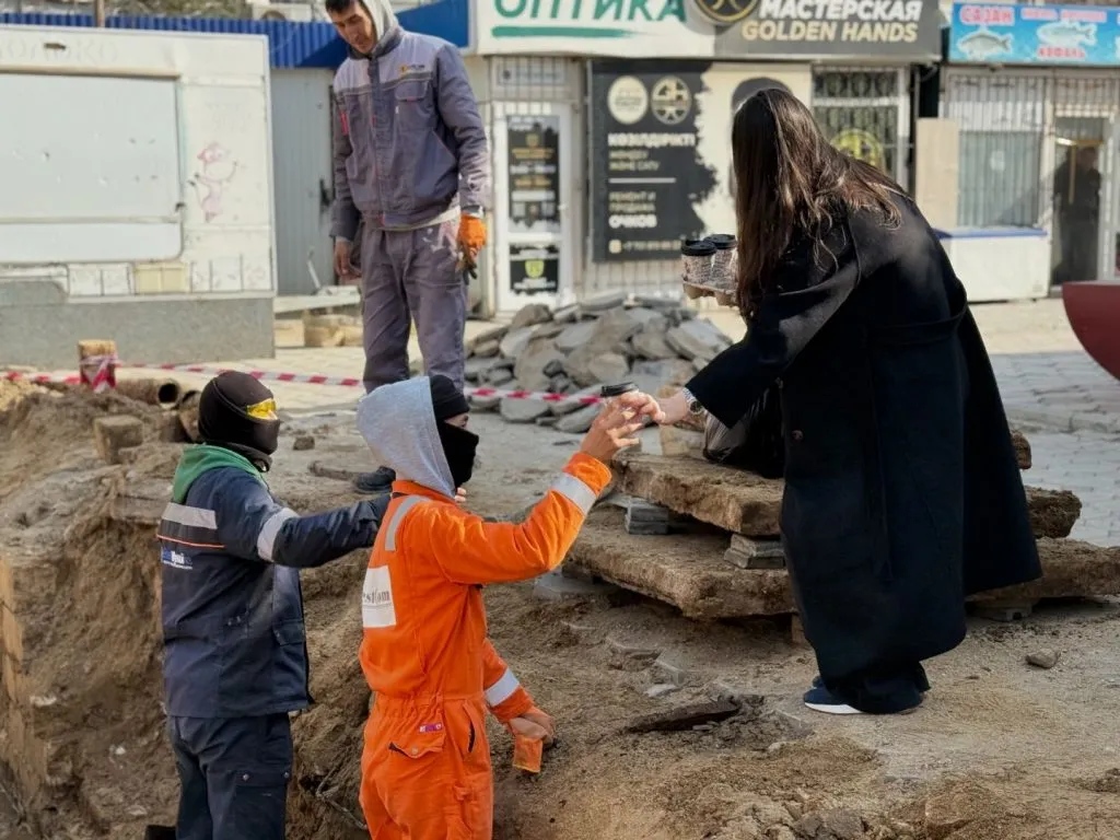 Помощь пытаются оказать местные предприниматели. Они доставляют ремонтникам горячий чай и пироги.