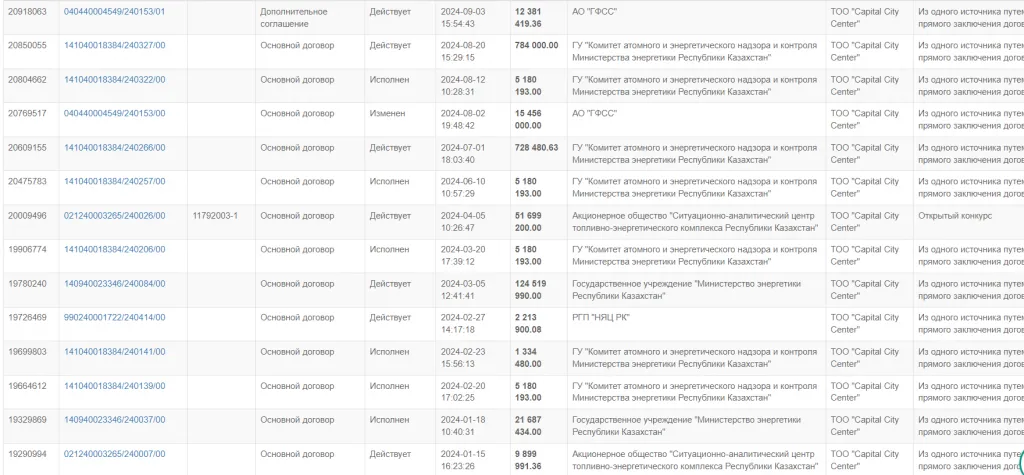 А заказов у компании достаточно много. Среди арендаторов были министерство энергетики (безвозмездно пользуются с 20 мая 2011 года, но нанимают ТОО для обслуживания), АО "Ситуационно-аналитический центр топливно-энергетического комплекса" и даже дочернее предприятие КазМунайГаз – ТОО "КМГ Инжиниринг". По сути, "КазМунайГаз" нашёл управляющего для своего актива, а потом его "дочка" платила этому управляющему за аренду помещений. Контракты в 2020 и 2022 году превысили 266 млн тенге.