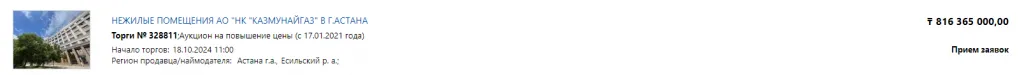 Что же предлагает "КазМунайГаз" за 816,3 млн тенге?