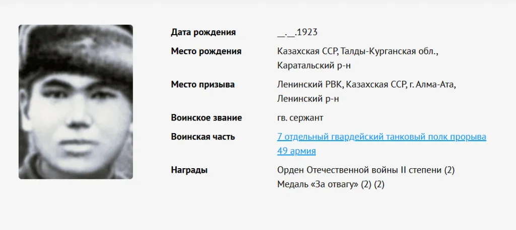 Документ появился на сайте Память народа. К карточке Кемеля Токаева прикреплялась информация о всех полученных наградах и рассекреченные архивные документы.