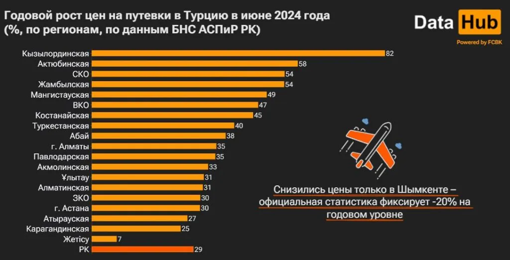 «По официальным данным, тут отдых в Турции обходился на 20% дешевле, чем годом ранее. Больше того, в июне 2023-го статистика тоже фиксировала годовое падение, сразу вполовину. Правда, тут мог быть эффект высокой базы: в июне 2022-го шымкентские цены на путевки выросли год к году в два раза»,