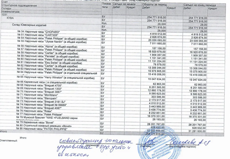 В документах госкомпания указала, что ювелирные изделия ТОО передали 12 июня 2024 года. В основном «КУВА» получил на баланс украшения без документов. Только у наручных часов «Rolex», Sky-Dwelle была оригинальная коробка, пластиковая карточка с кожаным чехлом, гарантийный талон и инструкция.
