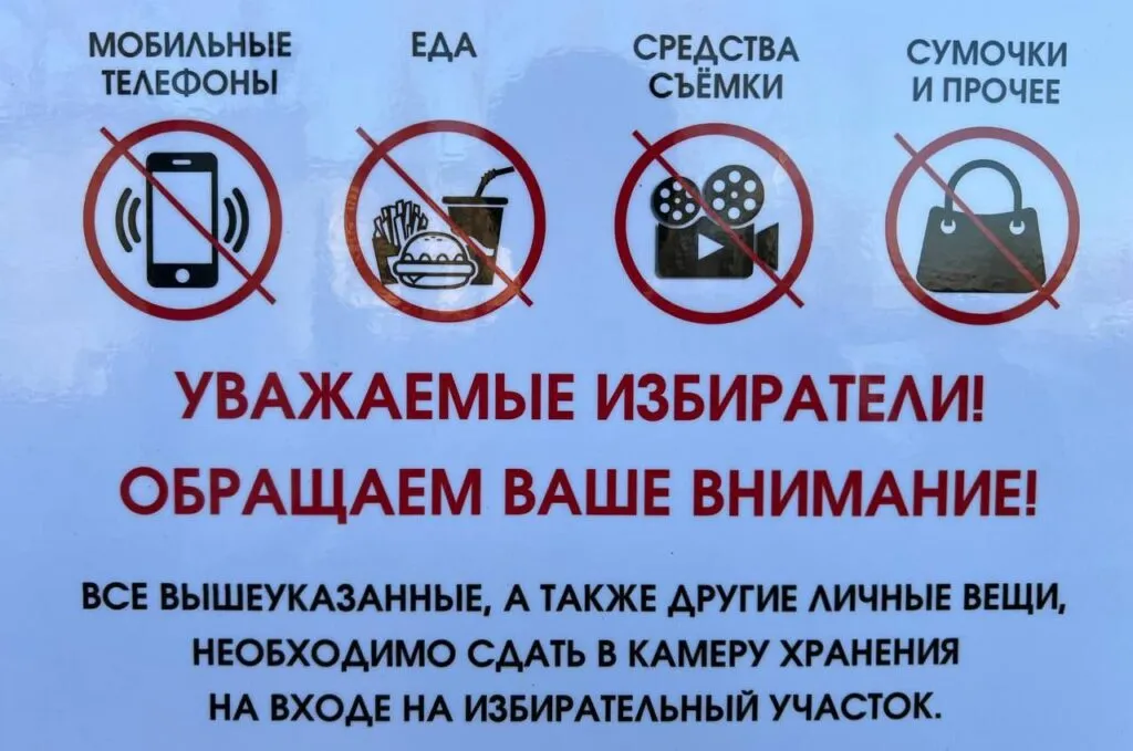 Россияне возмущаются, что нельзя с собой брать телефон. Это ранее никогда в РФ не запрещалось. Возможно, такие меры связаны с ситуацией на участках в России. Там голосующие обливали урны зеленкой и пытались поджигать сами участки.