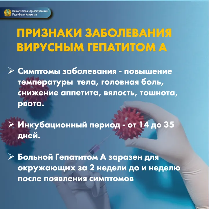 С начала 2024 года в стране зарегистрировано 850 случаев острого вирусного гепатита А, что в 1,9 раза выше чем в прошлом году.