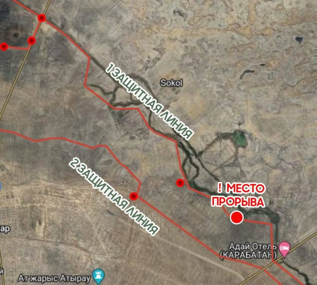 Прорыв дамбы вдоль канала Соколок произошел 24 мая из-за большого количества воды и сильного ветра, сообщает CMN.KZ со ссылкой на оперативный штаб по ЧС Атырауской области