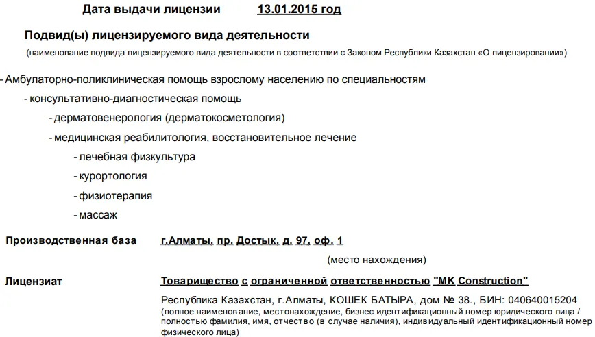 Помимо описанных ранее компаний – "Orion Traiding" и ТОО «Жамбылская ГЭС», Мадине Алдабергеновой принадлежит ещё организации "Ski spirit" и "MK Construction".