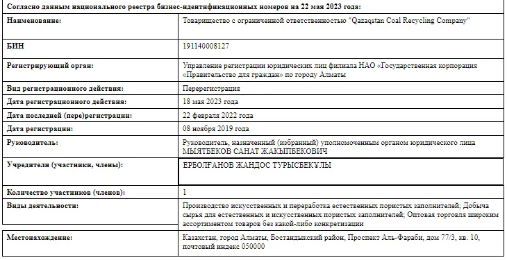 "Petro Synthesis" Көпбосынов владел чуть больше года. В мае 2023 года ТОО переименовали в "Qazaqstan Coal Recycling Company". Вместе с новым названием сменились учредитель (Жандос Ерболғанов – брат зампредседателя правления по экономике и финансам, члена правления ТОО "ПГУ Туркестан" Абзала Ерболганова), место регистрации (с проспекта Достык, 38 переехали в квартиру в ЖК "Esentai Apartments") и сфера деятельности. Компания перестала заниматься оптовой торговлей автомобильным бензином. Теперь ТОО стало производить и добывать сырье для естественных и искусственных пористых заполнителей и продавала оптом широкий ассортимент товаров.