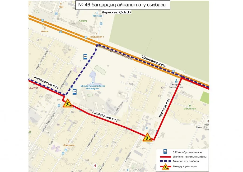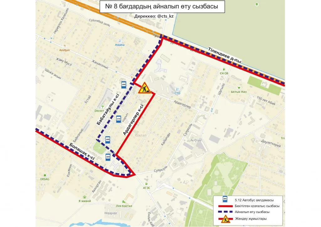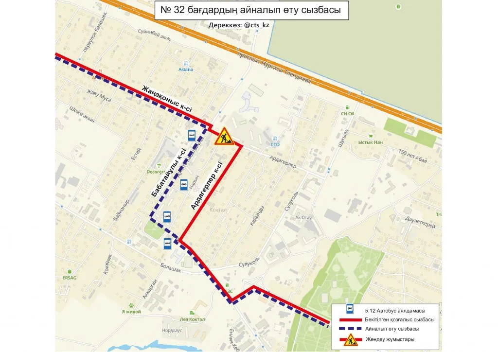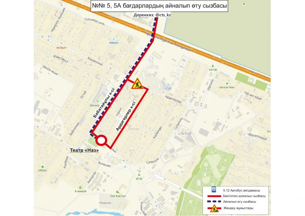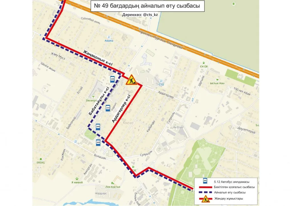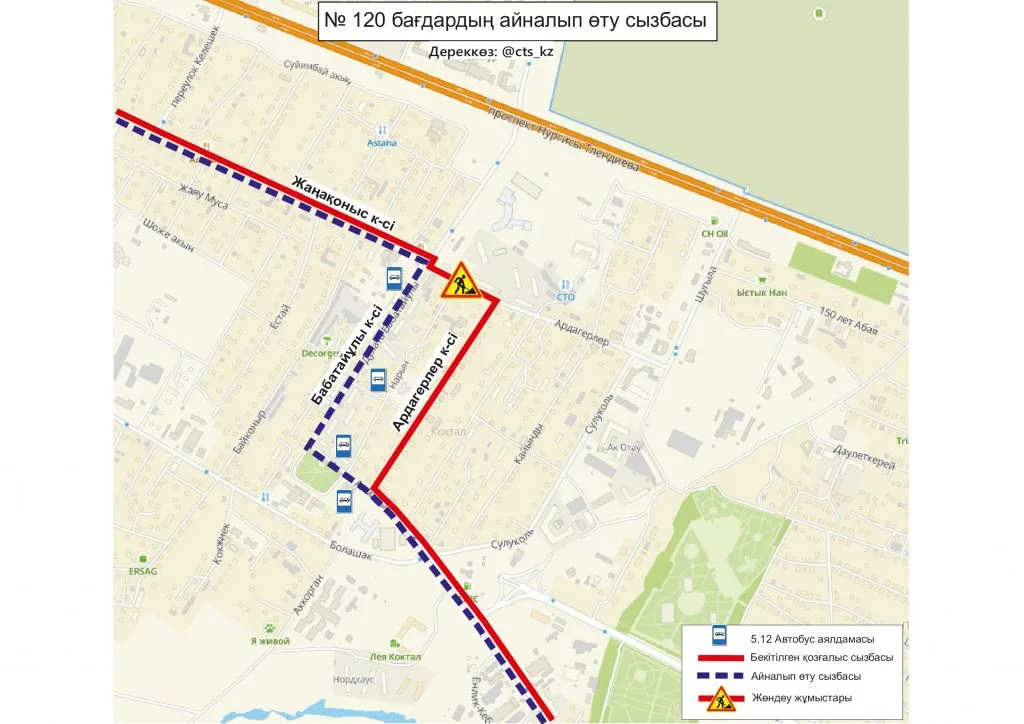 В ТОО "City Transportation Systems", обслуживающей общественный транспорт столицы сообщили, что до завершения ремонтных работ, временно изменили схемы движения маршрутов № 5, 5А, 8, 32, 46, 49, 120.