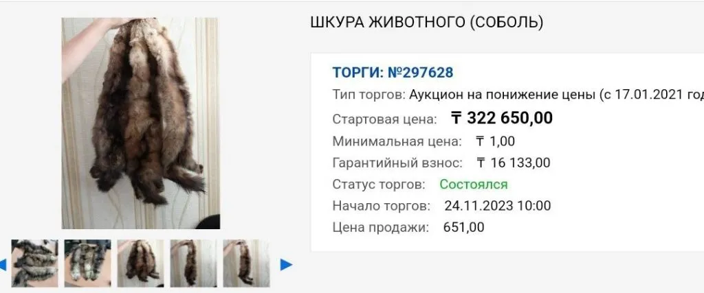 В итоге алтайские счетоводы выставили минимальный ценник в 1 тенге и отдали три шкурки с молотка всего за 651 тенге. Хотя его рыночная стоимость оценивалась в 107 тысяч тенге. Вот такая скидка для любителей животных.