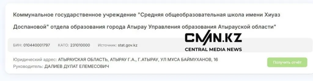 Тем временем в открытых источниках он до сих пор числится руководителем школы имени Хиуаз Доспановой.