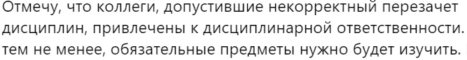 Здесь же, в комментариях, официальный аккаунт Университета ответил, что нужно коллегиальное рассмотрение заявления для решения проблемы. На это Фатима выразила сожаление, что пришлось прибегать к огласке для того, что можно было решить на уровне наставников.