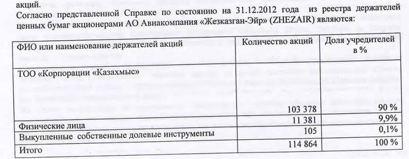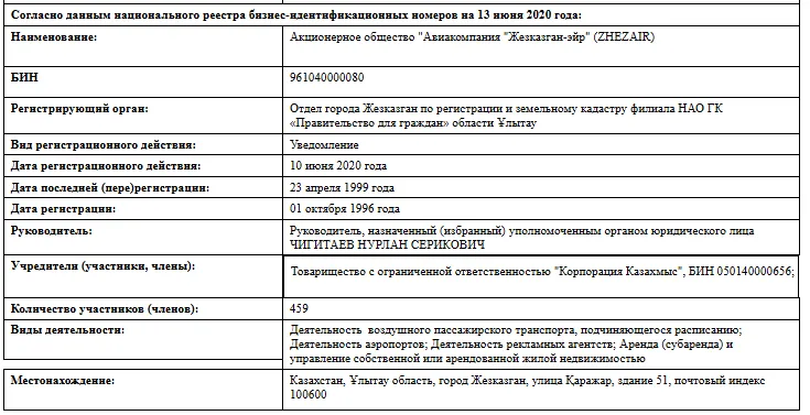 Но в официальном ответе на запрос редакции CMN.KZ министерство транспорта сообщило, что АО «Авиакомпания «Жезказган-эйр» принадлежит ТОО «Корпорация Казахмыс» с 2015 года. При этом лишь в июне 2020 года у АО изменился учредитель. Ранее в графе владелец значился АО "Центральный депозитарий ценных бумаг". Возможно, такая путаница с годом покупки связана со свидетельством о госрегистрации эмиссии ценных бумаг от 29 декабря 2014 года, которую произвело Агентство по регулированию и надзору финансового рынка и финансовых организаций.