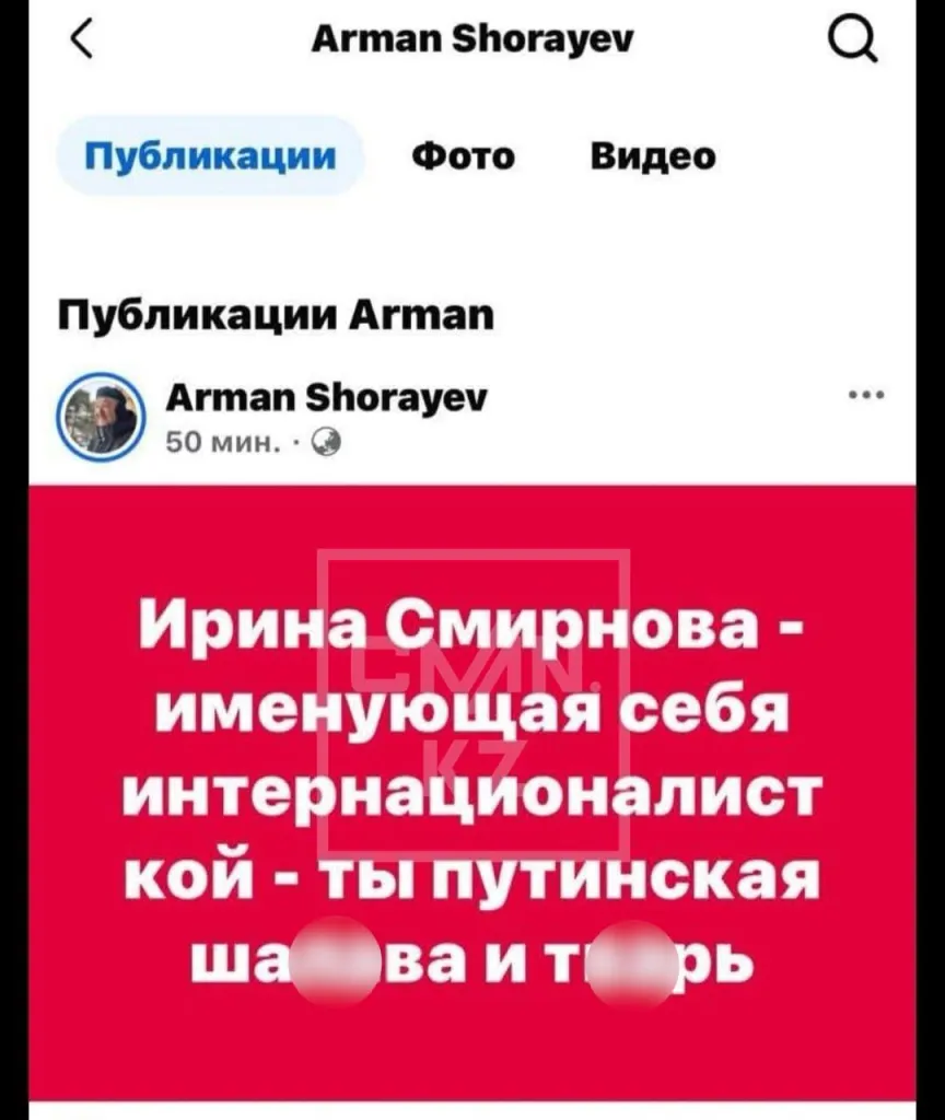Напомним, на странице общественника Армана Шораева в социальных сетях появился оскорбительный пост в адрес депутата мажилиса парламента Ирины Смирновой. Однако, через некоторое время Шораев удалил публикацию и выложил новый пост, в котором заявил, что его аккаунт взломали.