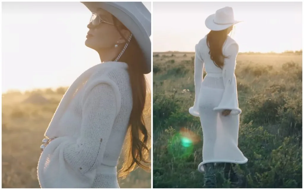 Жулдыз Абдукаримова опубликовала видео, на котором она шагает по степи в белом прозрачном костюме, подчеркивающем фигуру и не скрывающем округлившийся живот, передаёт CMN.KZ
