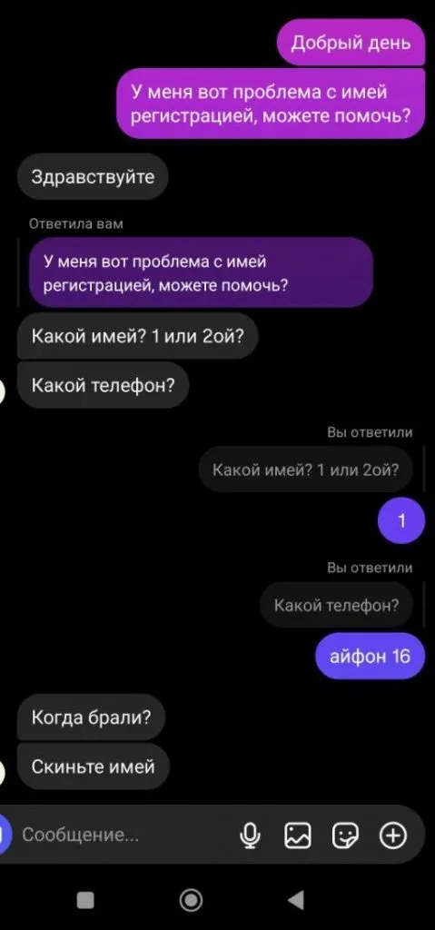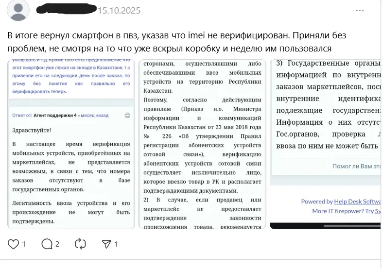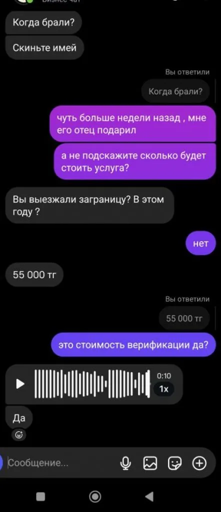 Другая казахстанка поделилась историей о том, что ей телефон подарили родственники из США. С его верификацией также возникли проблемы. Выход нашёлся – через "помогаек".