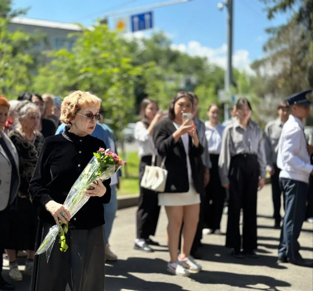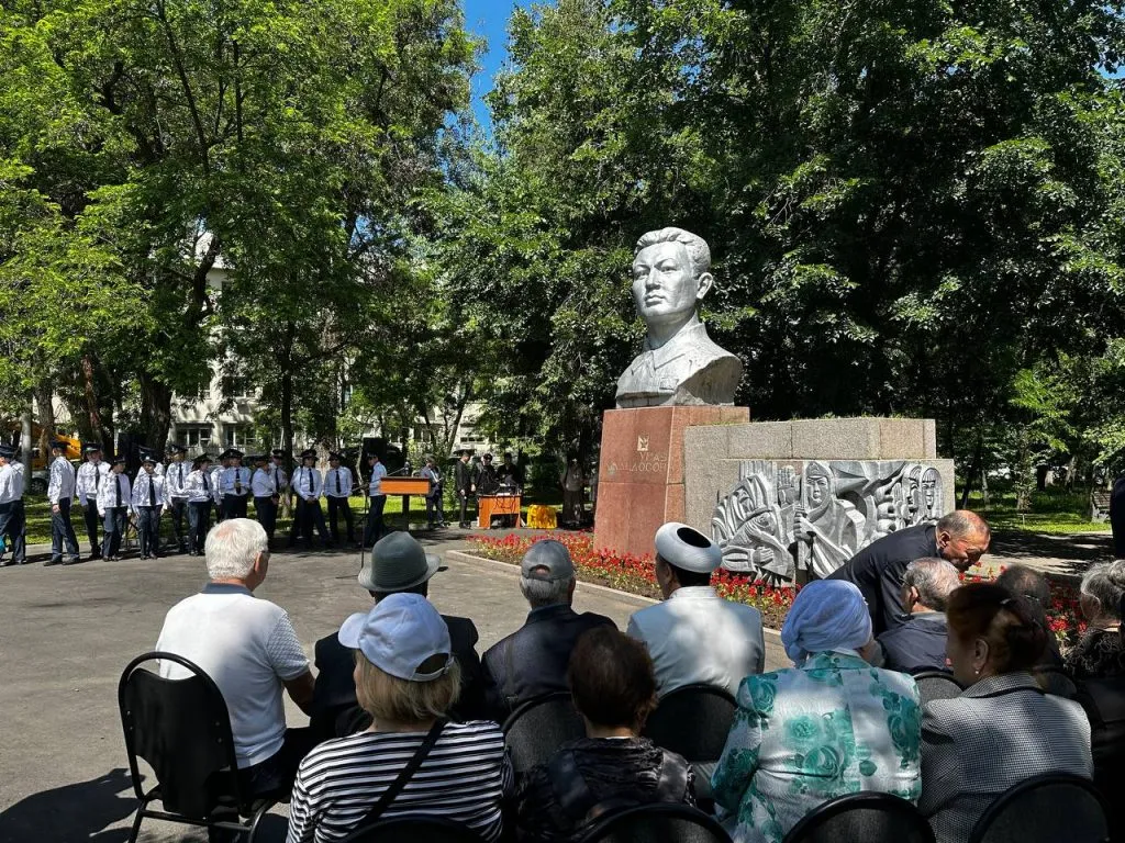 Уже к 9.30 утра возле памятника общественному деятелю стали потихоньку собираться ученики военной школы Бостандыкского района, внуки жертв репрессий и ветераны трудового фронта.