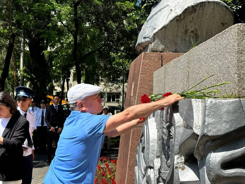 После выступлений состоялось традиционное возложение цветов к памятнику. Горожане вместе с учениками военной школы Бостандыкского района и Сакеном Аралбаевым поднесли красные гвоздики к мемориалу.