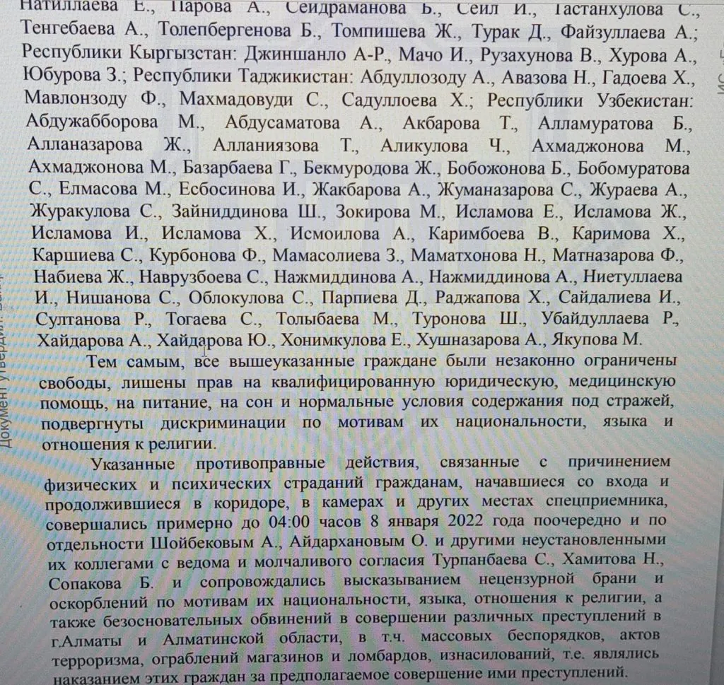 В ночь с седьмого на восьмое января 98 задержанных граждан были доставлены в спецприёмник и переданы должностным лицам Управления полиции Карасайского района. Что сделали полицейские?