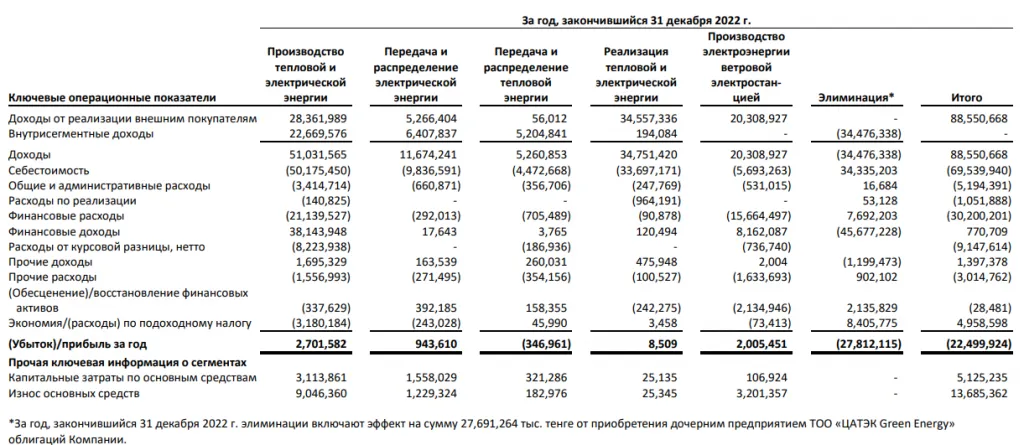 В 2022 году у АО "ПАВЛОДАРЭНЕРГО" появился огромный убыток. 22,4 млрд тенге не досчитались владельцы градообразующего предприятия, несмотря на прибыль от производства тепло и электроэнергии в 2,7 млрд тенге. Причиной стала покупка облигаций АО "ПАВЛОДАРЭНЕРГО" дочерней компанией ТОО "ЦАТЭК Green Energy" на 27,8 млрд тенге. В отчёте этот пункт указали как элиминация.