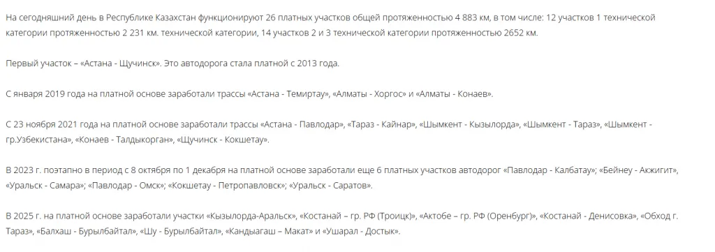 Новое правило распространяется на все платные дороги республиканского и международного значения. Это гарантирует прозрачность и равные условия для всех водителей.