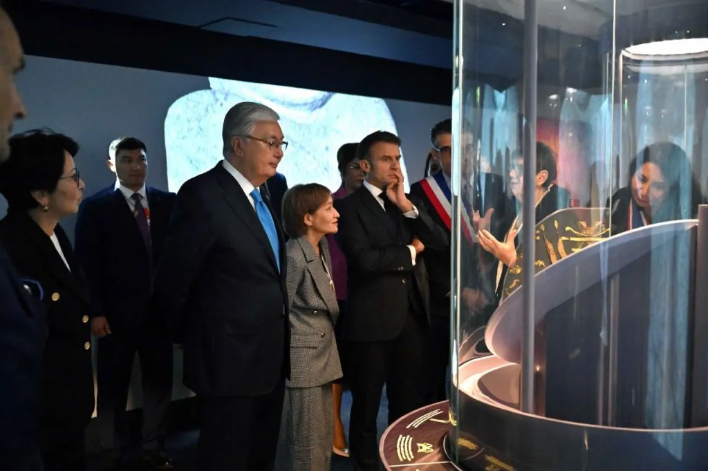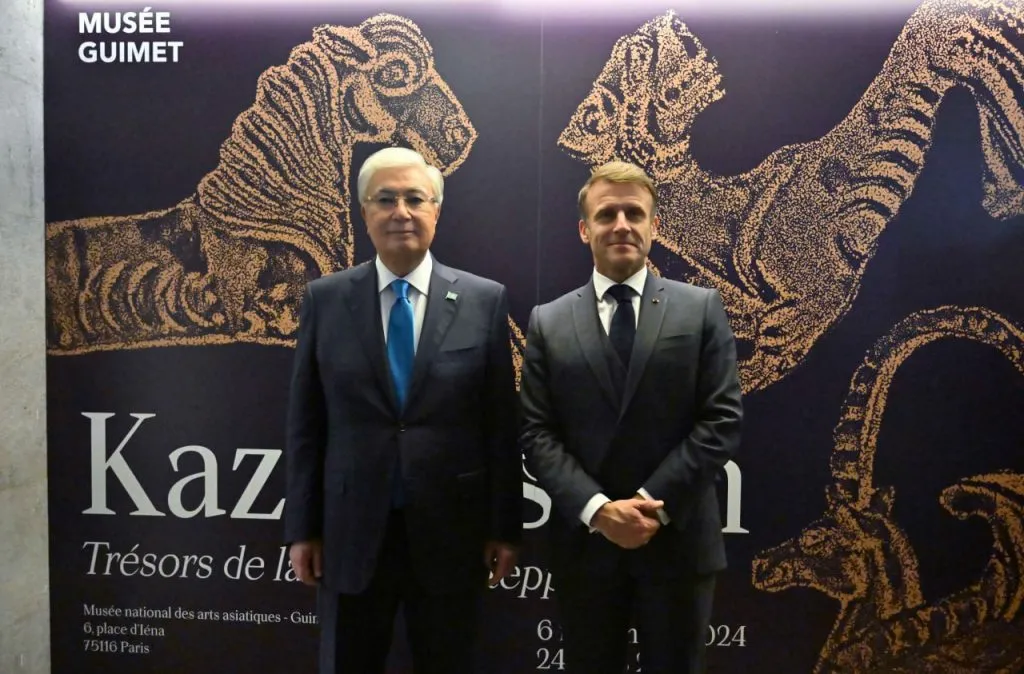 Президенты Казахстана и Франции посетили Музей азиатских искусств Гиме, в котором открылась выставка «Казахстан: Сокровища Великой степи», сообщает CMN.KZ.