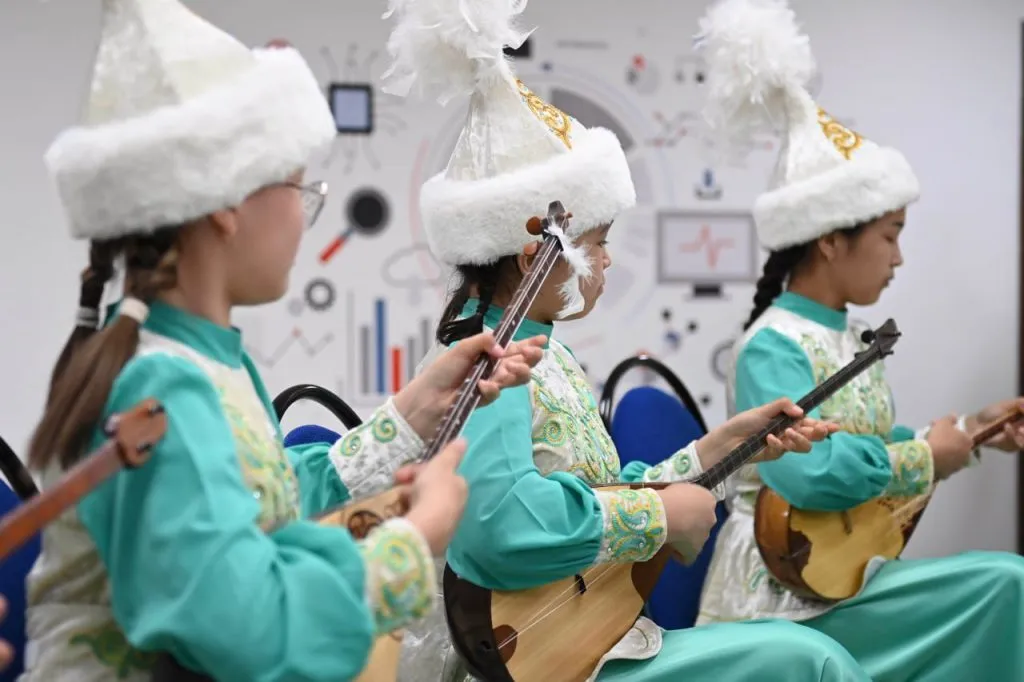 Токаев и шейх осмотрели кабинет арабского языка, где школьники продемонстрировали им свои познания.
