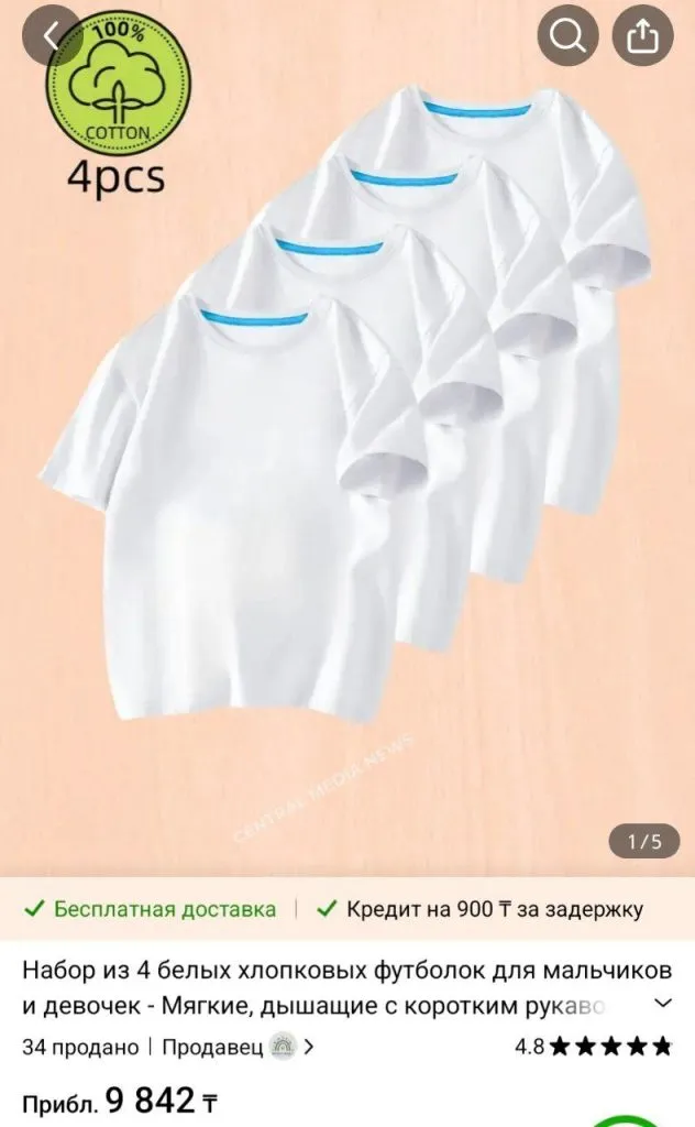 Это самый привлекательный по цене вариант: на китайских площадках рюкзак с широкими лямками и твердой спинкой стоит меньше 5 тысяч тенге. А набор белых футболок из хлопка – около 10 тысяч тенге.