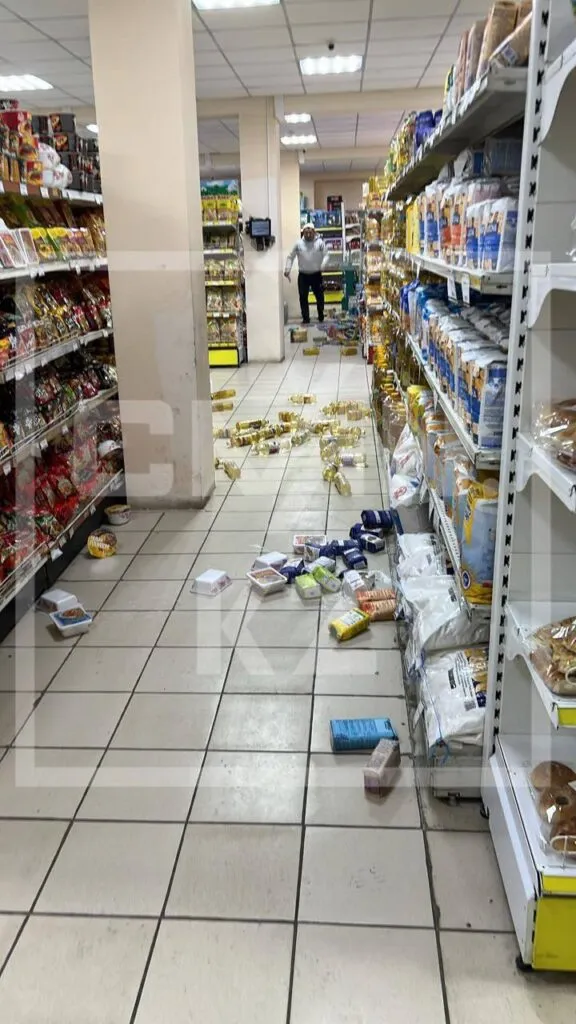 В магазинах с полок попадали продукты. Это супермаркет «Ақжол», что в мкр. Тастыбулак Наурызбайского района.