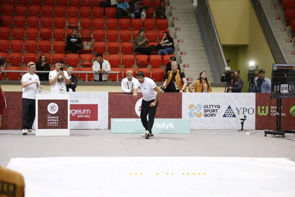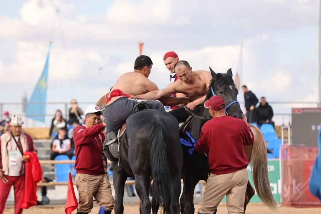 Аударыспак: В борьбе на лошадях золото Казахстану в весовой категории до 100 кг сегодня завоевал Сырым Избасаров. Также золото в категории свыше 100 кг завоевал Биржан Косалиев. Серебро нашей национальной сборной сегодня принес Есимхан Рахматилла в весе до 90 кг.