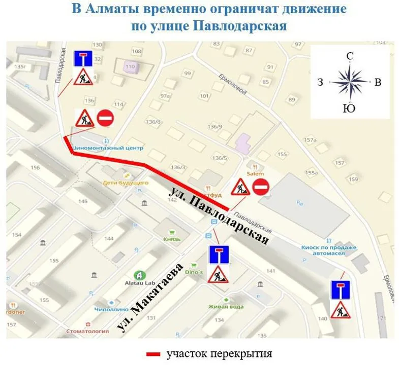 Также в акимате сообщили, что частичное ограничение движения для автотранспорта по улице Павлодарской в Жетысуском районе от дома №136 до улицы Макатаева в обоих направлениях, введённое на прошлой неделе из-за реконструкции местных теплосетей, продлили до 00:00 часов 26 августа.