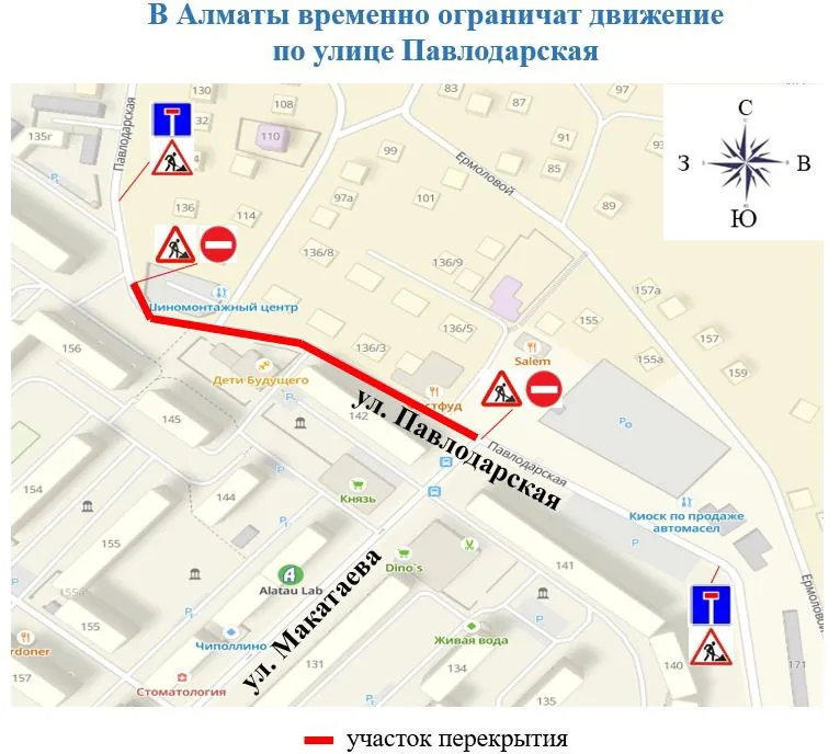 Как уточнили в ТОО «Алматинские тепловые сети», движение для автотранспорта будет закрыто на участке по улице Павлодарская от дома № 136 до улицы Макатаева с 6:00 21 сентября до 14:00 22 сентября.