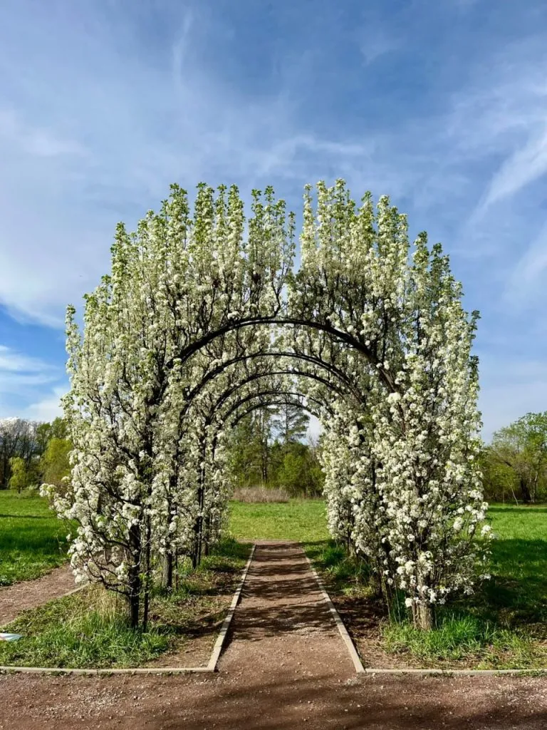 В Ботаническом саду Алматы началось цветение груши Каллери «Шантеклер». Изящная арка из этих растений, сейчас напоминает настоящий белоснежный тоннель, сообщает CMN.KZ.