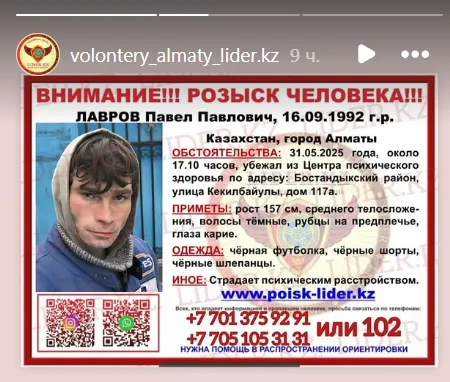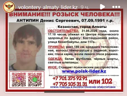 Ориентировки с приметами в соцсетях разместили волонтёры. Они просят горожан помочь с поиском двух мужчин. Ещё 31 марта они вдвоём сбежали с центра психического здоровья по улице Абиша Кекилбайулы (бывшая Каблукова), сообщает CMN.KZ