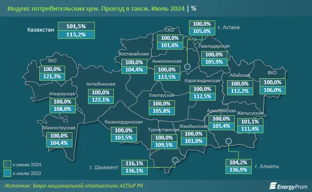 «В месячной динамике стоимость услуг в секторе выросла только в трёх регионах — Шымкенте, Алматы и Жетысуской области: на 16,1%, на 4,2% и на 1,1% соответственно. В остальных 17 из 20 регионов страны цены остались на прежнем уровне», — говорится в отчёте.