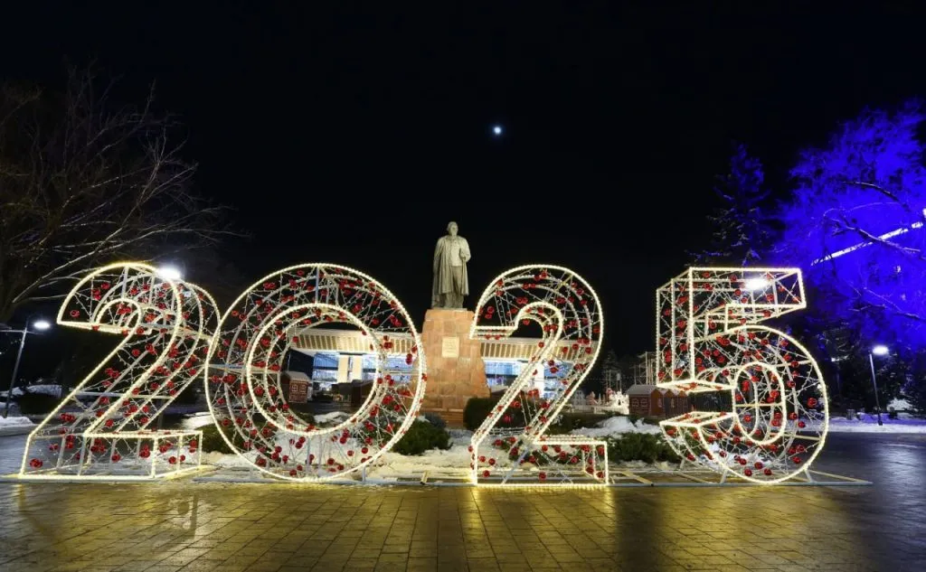 «Для оформления использовано 6 км гирлянд, яркие декоративные элементы и новогодние игрушки, изготовленные в том числе из переработанных экологически безопасных материалов», - говорят в акимате.