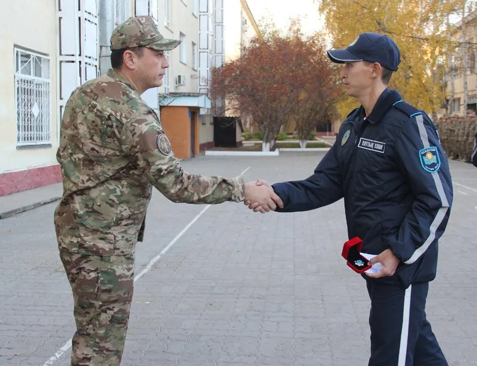 Как отмечается, начальник войскового наряда рядовой Нариман Мырзахметов был награжден нагрудным знаком «Ұлттық ұлан қызметінің үздігі», а патрульным рядовым Дамиру Мукашеву и Давиду Корсунову были вручены нагрудные знаки «Қоғамдық тәртіпті сақтағаны үшін».