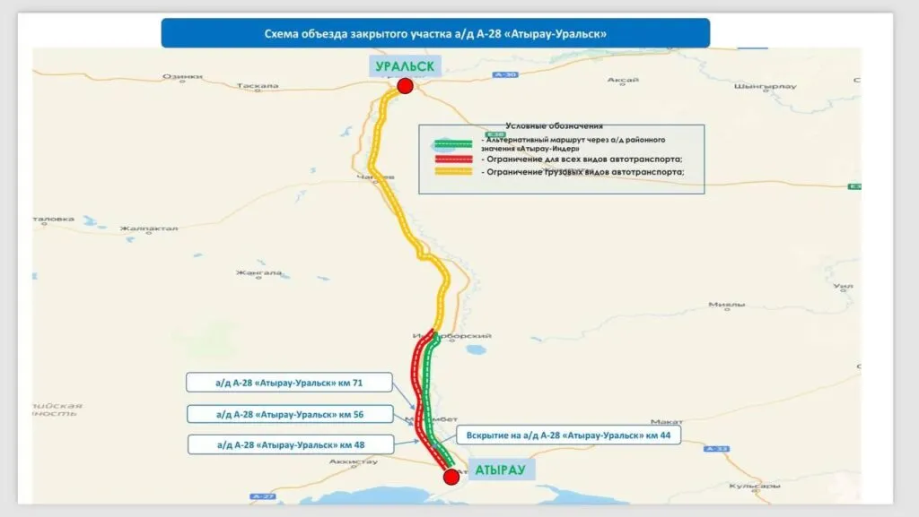В штабе региона уточняют, что ситуация под контролем и переливов пока нет. Еще с утра на нескольких участках трассы Атырау-Уральск из-за переливов дорожникам пришлось закрыть проезд.