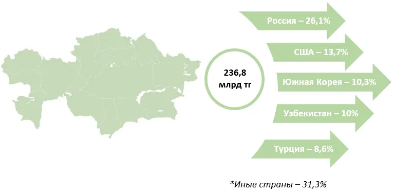«Больше всего денег в Казахстан отправляли из России (26,1%), США (13,7%), Южной Кореи (10,3%), Узбекистана (10,0%) и Турции (8,6%)», — сообщили в пресс-служба Нацбанка.