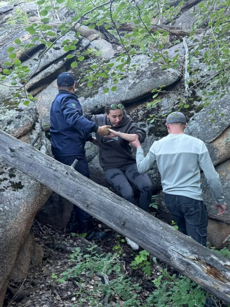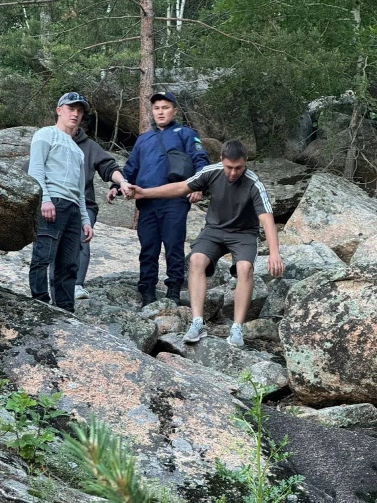 «Трое мужчин и женщина поднялись в горы на высоту около 200 м над уровнем моря и не смогли самостоятельно вернуться. Спасатели Каркаралинского района оперативно пришли им на помощь. Взобравшись на вершину, помогли туристам спуститься», - сообщили в ДЧС.