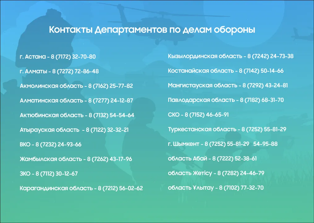 Призывники, их родители, журналисты, представители общественности могут обратиться за необходимой информацией и получить ответы на все интересующие вопросы. В каждом департаменте по делам обороны функционируют «горячая линия».