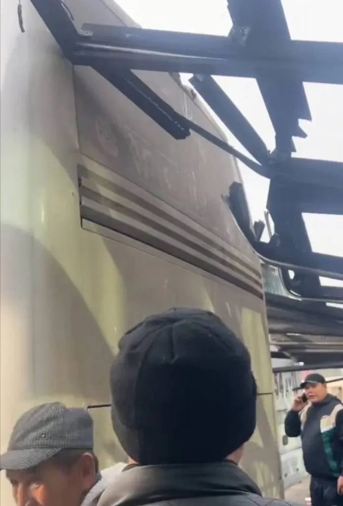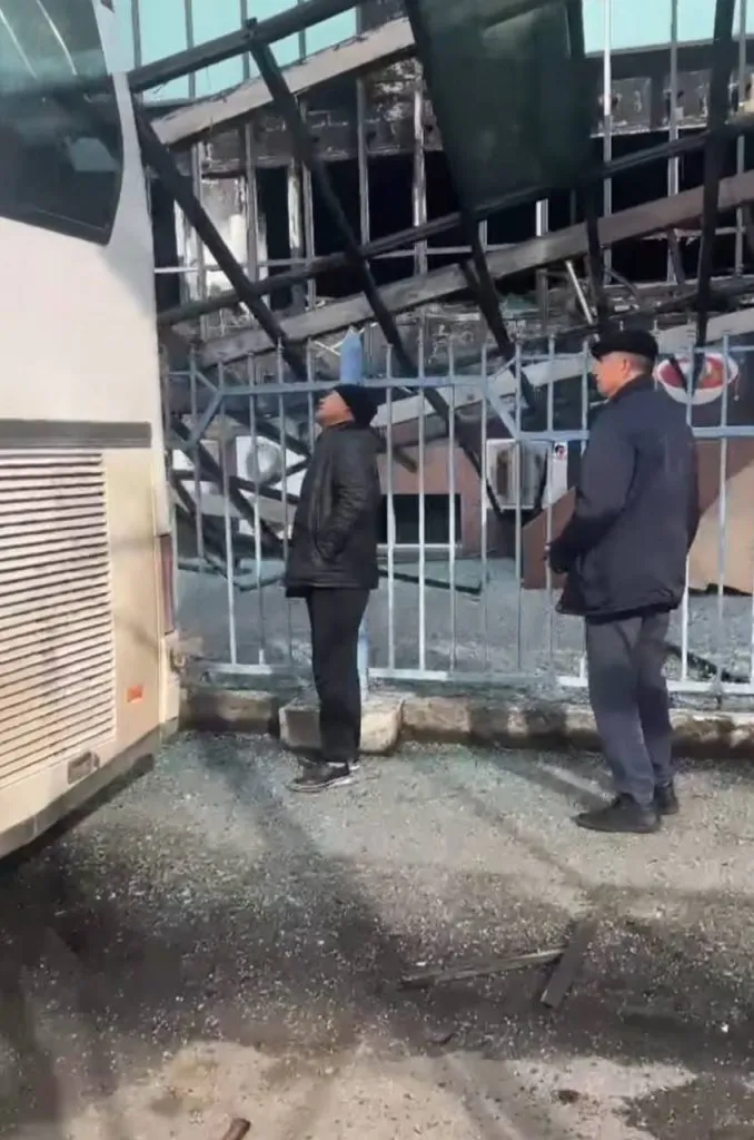 Как пишут в одном из местных пабликов, железная конструкция торгового дома "Акшын" обвалилась и повредила несколько рейсовых автобусов.