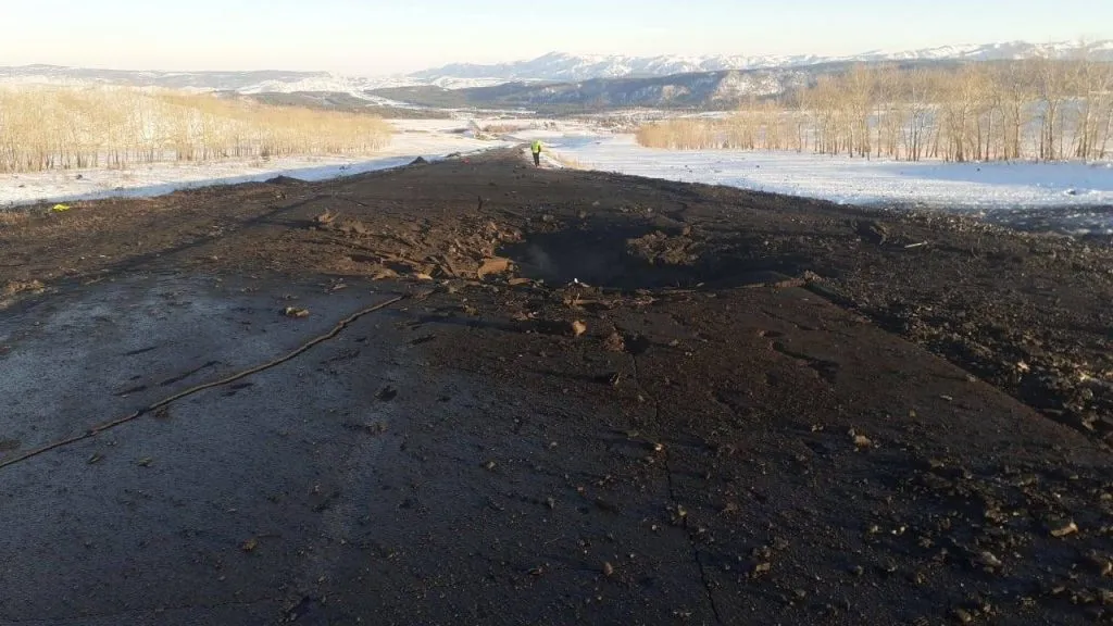 Перевозивший взрывчатое вещество грузовик взорвался. Судя по видео на месте взрыва осталась только воронка. По предварительной информации погибли водитель и охранник.