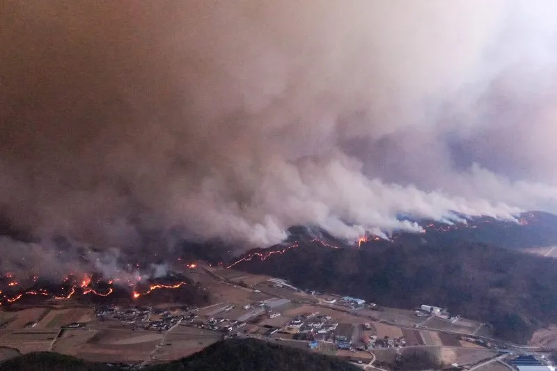 Беспрецедентные пожары охватили юго-восток страны. Пожары, начавшиеся в уезде Санчхон в провинции Южный Кёнсан в прошлую пятницу, распространились на близлежащий уезд Уйсон и продвигались в соседние уезды Андон, Чхонсон, Ёнъян и Ёндок. Распространению огня способствуют сильные сухие ветра, пишет агентство Yonhap.