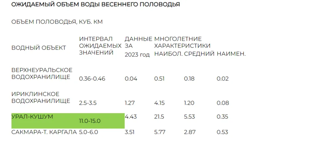 в Верхнеуральском водохранилище, которое расположено на территории Челябинской области, ожидается объём половодья от 0.36 до 0.46 кубических километров. Это в девять раз превышает показатели 2023 года и приближается к максимальным многолетним характеристикам.