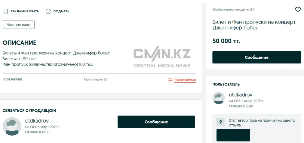 }}К слову, на OLX уже начали появляться первые объявления о перепродаже. Продавцы предлагают билеты на концерт Дженнифер Лопес от 50 тысяч тенге, а фан-пропуски — по 100 тысяч. В описаниях отмечается, что количество фан-пропусков ограничено.