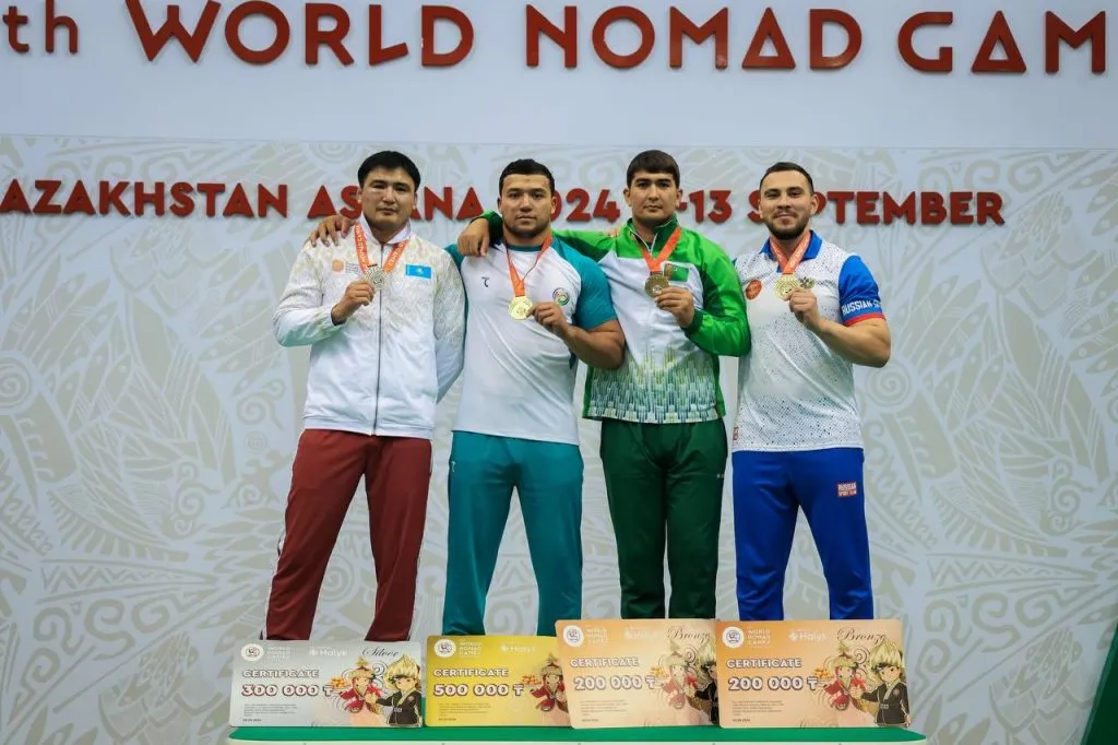 Тенге ілу: У Казахстана два золота. В стиле «бес белес» победу нам принес Бекнур Сериков. В стиле «қос құлаш» - Рахат Камбаров.