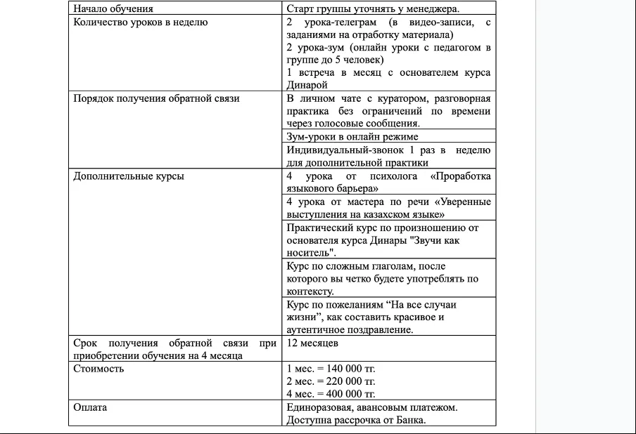 Есть и специализированные предложения. К примеру, в одной из популярных языковых школ предлагают расширенный эксклюзивный курс за 140 тысяч тенге в месяц.