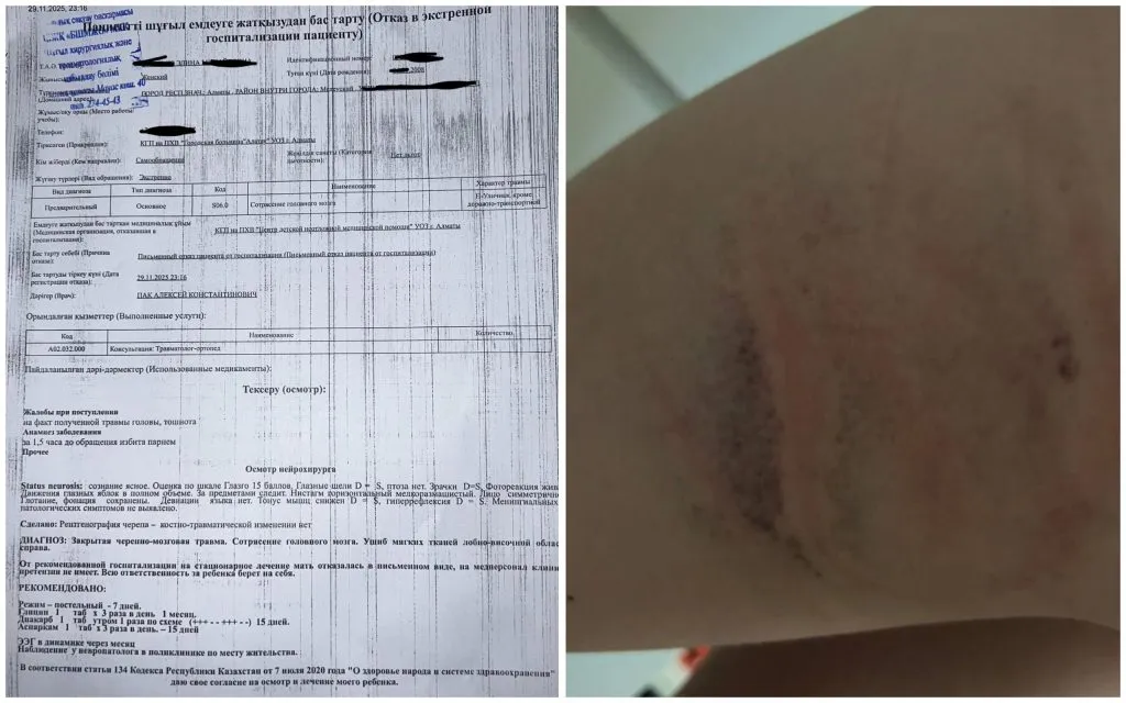 По словам родственницы, молодой человек учится в Академии МВД Алматы и раньше уже проявлял агрессию. Семья сохранила фото- и видеодоказательства и собирается обращаться в полицию.