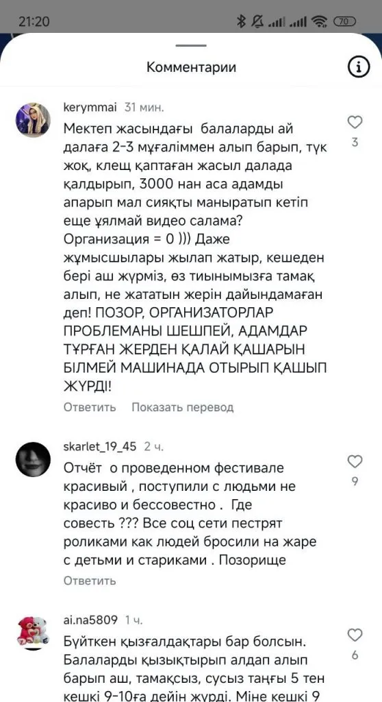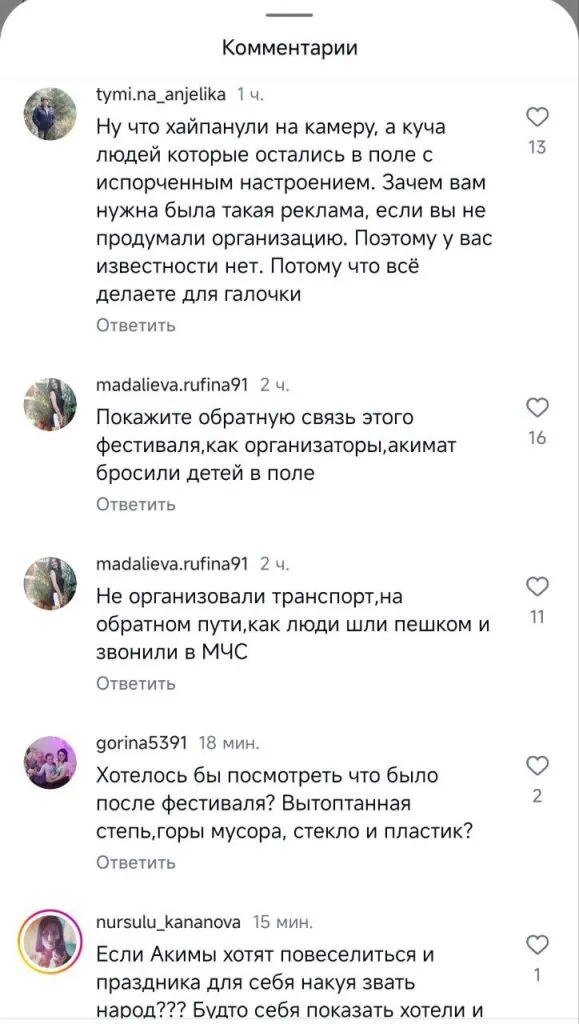 Наш корреспондент, как и многие гости, которых бросили на полпути, спустя несколько часов устал ждать и поехал вместе с гостями из Алматы на попутках до города Каратау. А оттуда уже через сервисы такси до Тараза. Что было дальше, известно только из видео, которые публикуют оставшиеся гости фестиваля. На кадрах ниже автор утверждает, что их привезли танцевать на мероприятии. Однако после окончания взрослым и детям пришлось идти вниз по горной местности до стоянки автобусов. Напомним, это около 10 километров. Транспорт за ними никто не прислал.