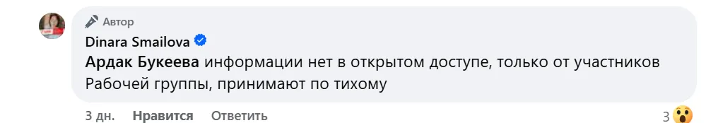 «Я очень возмущена этим законом. Я считаю, что это заморозит многие организации, блогеров и журналистов. Людей, которые работают и приносят стране пользу. Почему они решают за вкладчиков, кого они будут финансировать. Они вмешиваются в право собственности. Конституционное право. Очень хорошо и правильно о нашем обществе сказано в 28 статье Конституции РК. Общество должно быть заботливым. Государство сейчас опять всё переводит в своё русло. У людей отнимают даже право проявлять сочувствие, заботу и оказывать помощь. Получается, за нас будут решать, кого можно пожалеть, а кого нельзя? Это очень серьёзное нарушение наших прав и свобод», — подчёркивает Смаилова.
